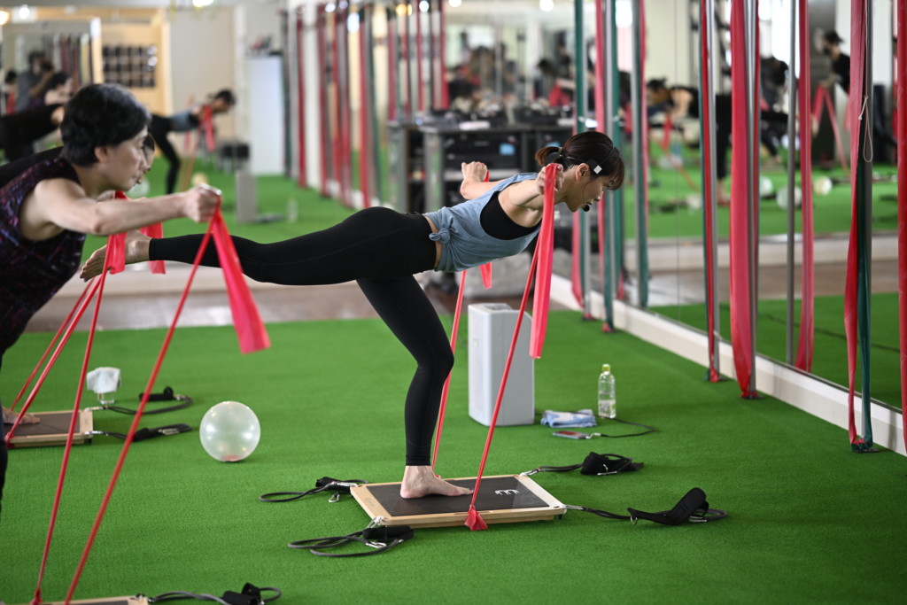 ゴムバンドとチューブの特性を利用してエクササイズを行います。カラダに優しい負荷を安全にかけながら動き続けます。一方で動きのスピードや大きさを参加者ご自身が調節する事で挑戦的なワークアウトにもなります。 日常では使用しにくい筋群を使用し常に動作コントロールが必要な新感覚のエクササイズを行う事ができます。